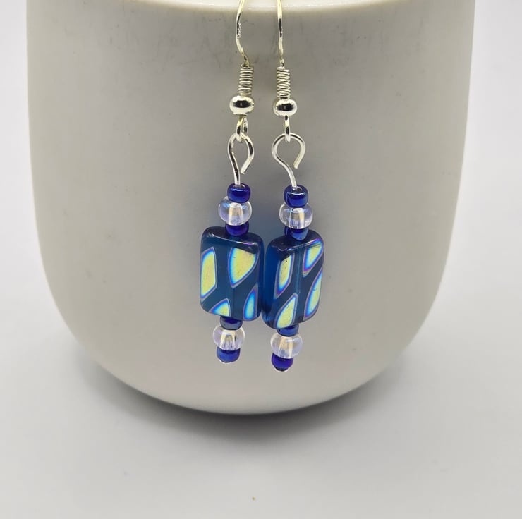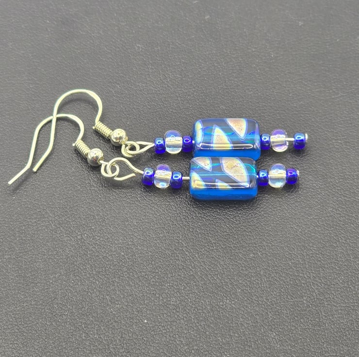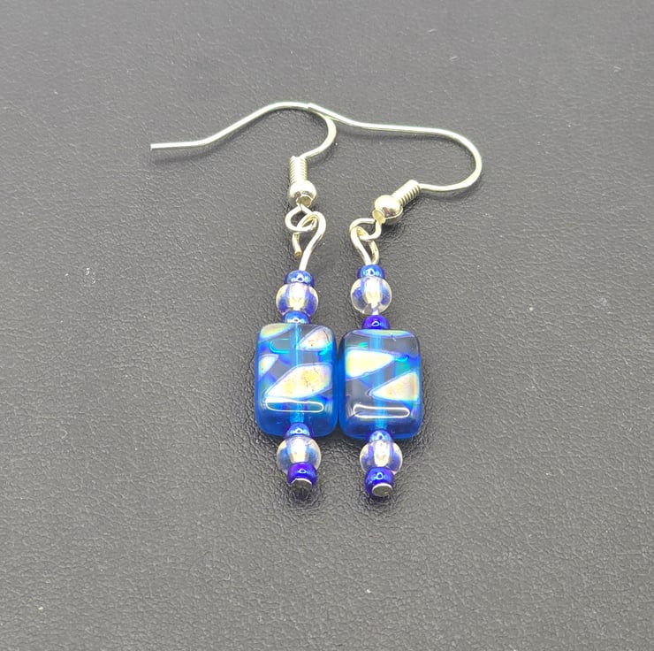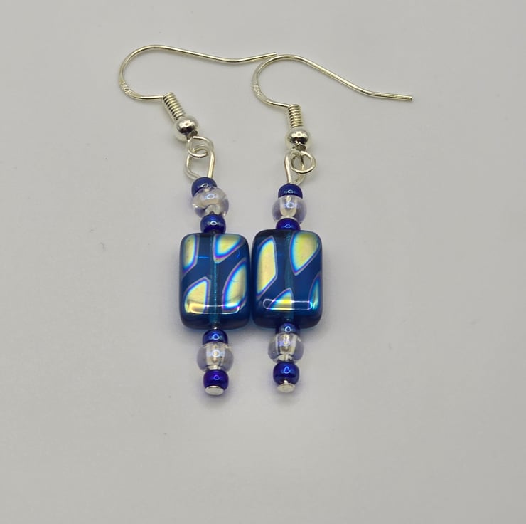 Czech Glass Blue rectangle glass earrings