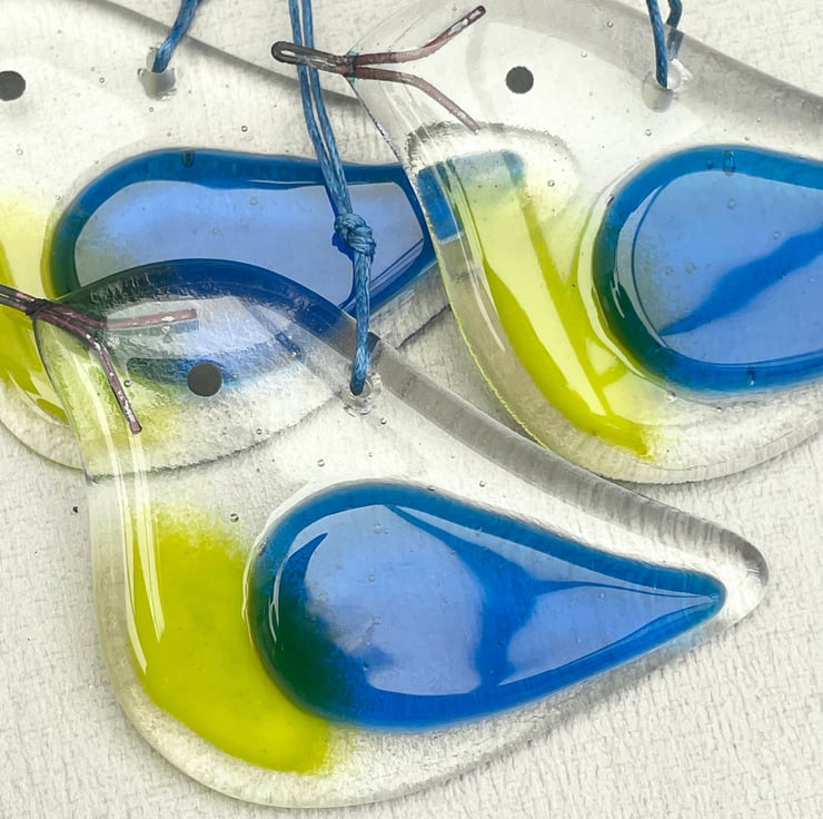Pretty fused glass bird suncatcher, threaded with natural cotton cord these make such lovely gifts for just about any occasion.
