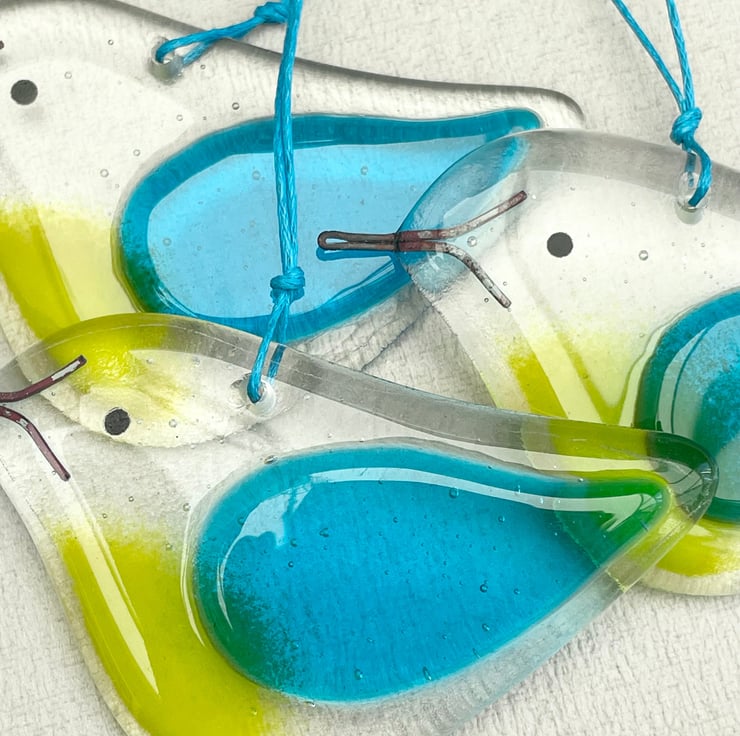 A handmade fused glass suncatcher, these birds are threaded with natural cotton cord and make lovely gifts for just about any occasion.