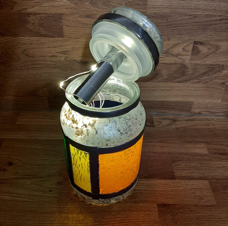that work 20 led lights . Safe , cool lighting to show illuminate art work on the jar .