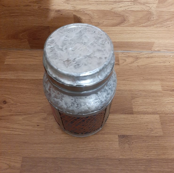 Decorative, night light. Created from a heavy tough jar with airtight lid that holds battery and on off switch ,