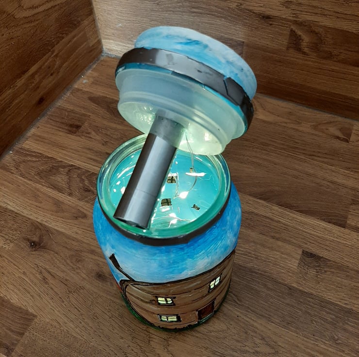 that work 20 led lights . Safe , cool lighting to illuminate art work on the jar .