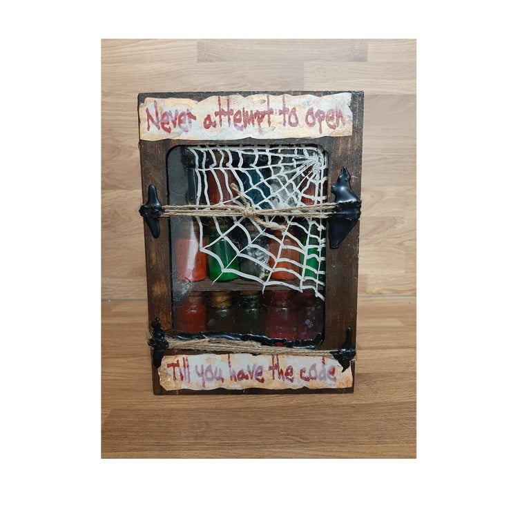 Poison potions in old wizard's book Little bottles to concoct spooky alchemy