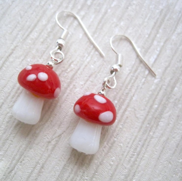 STAINLESS STEEL AND LAMPWORK GLASS EARRINGS.