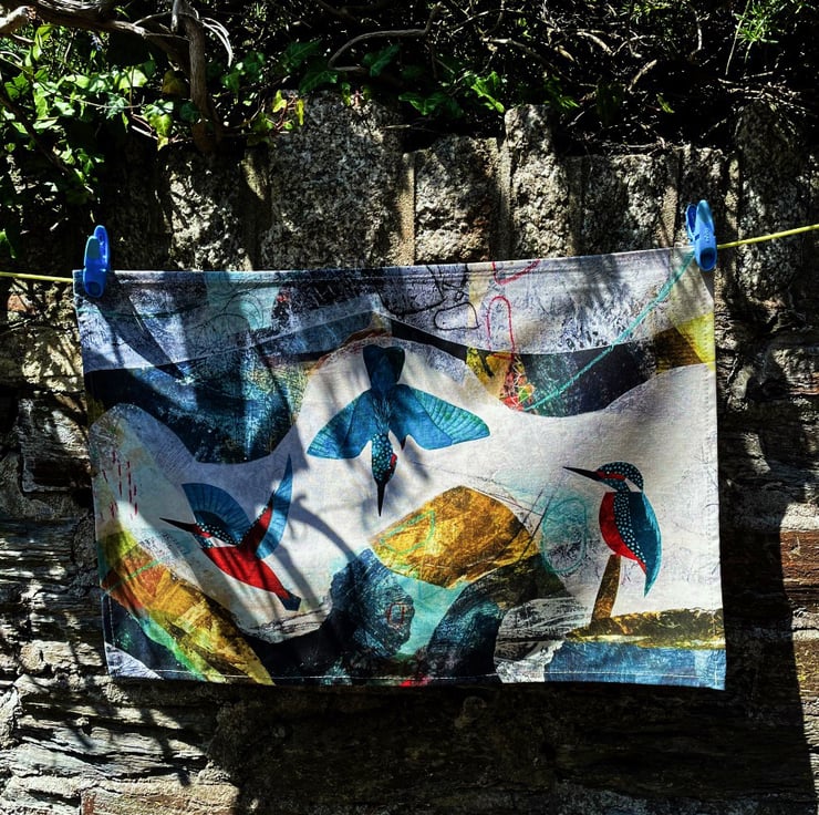 A beautiful, practical gift with a design taken from one of my recent collaged paintings that was exhibited at The Royal Society of British Artists Bicentenary Exhibition and features colourful kingfishers swooping and soaring.