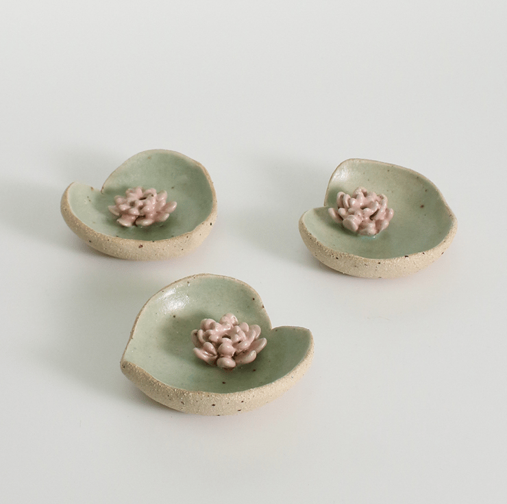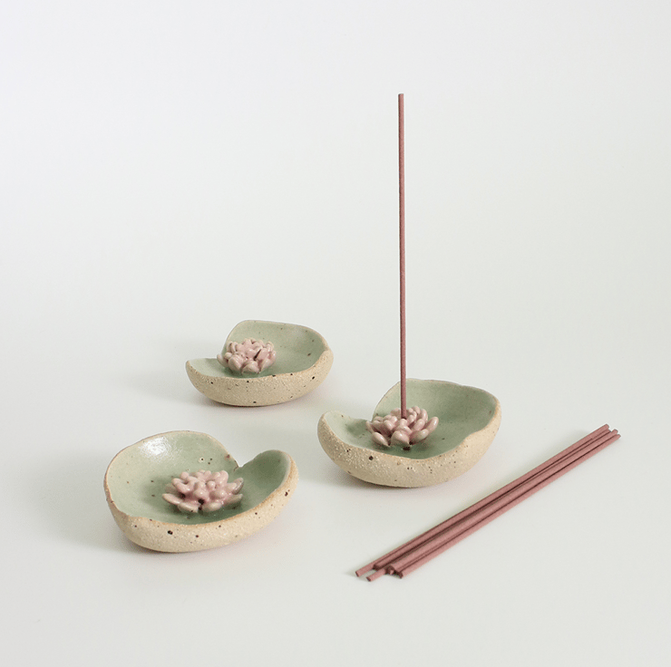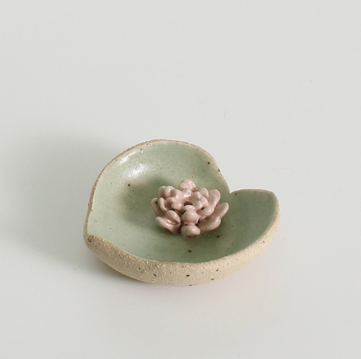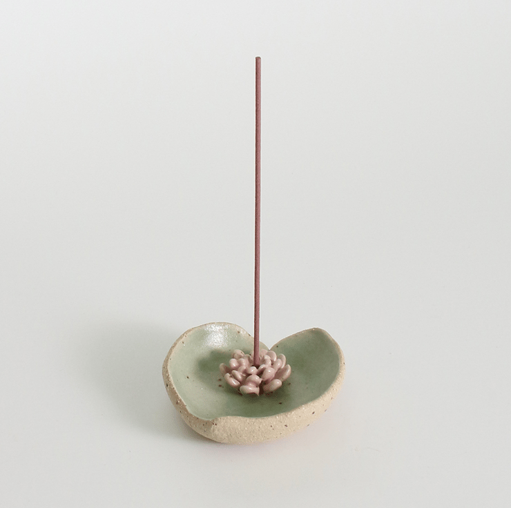 Bring a touch of nature’s calm into your home with our handmade ceramic incense holder, crafted in the shape of a serene lily pad with a delicate pink flower at its centre. The flower is designed to securely hold your incense stick, while the lily pad dish catches the ash, keeping your space tidy and beautiful.