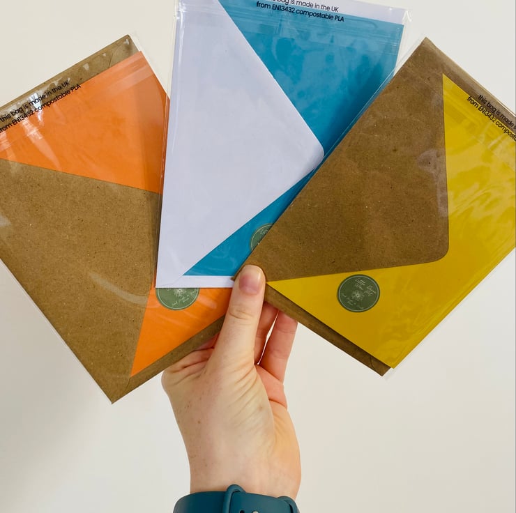 Our cards are all A6 sized and are made with recycled card and recycled envelopes. All of our cards are blank inside for your own message.