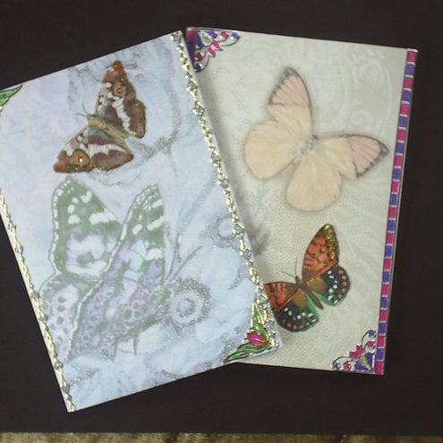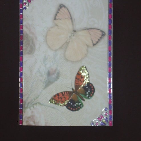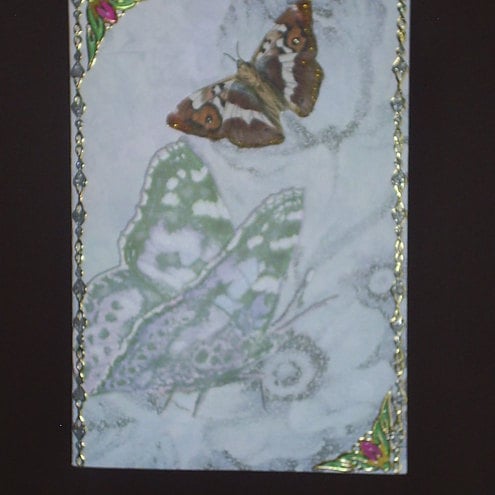 TWO A6 size butterfly greetings cards. Each card measures approximately 4" x 6" and come with a handmade decorated insert which has been left blank for your own message. Each card also has a handmade pink envelope and will come in a protective poly sleeve.The price is £2 for BOTH cards which will be sent post free in the UK. Elsewhere there is a small postal charge of £1 for shipping. Both cards have been created in a smoke free home.