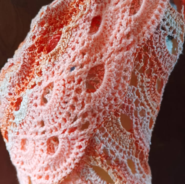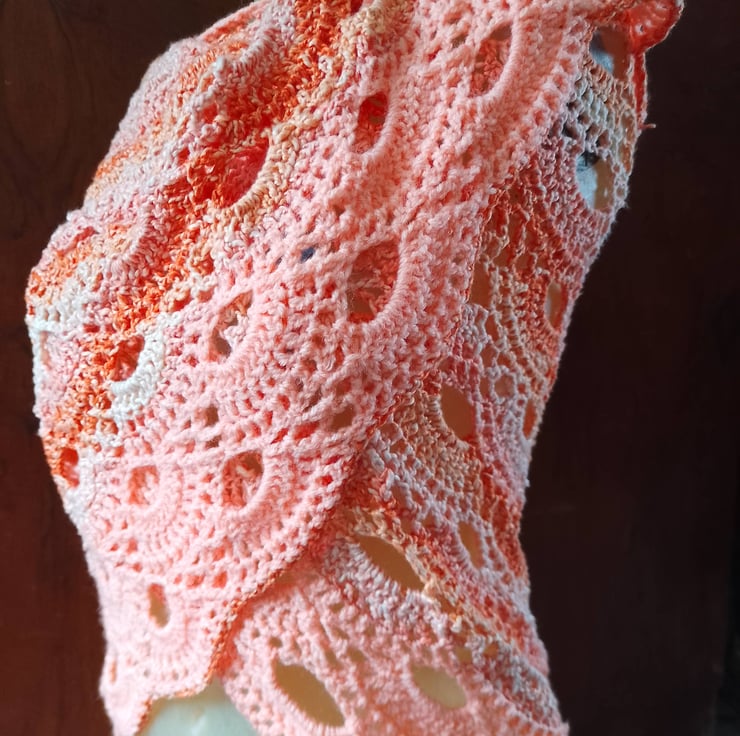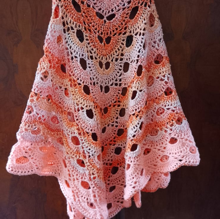 Handmade Crochet Shawl – Peach Coral Lace Wrap, Lightweight Cotton