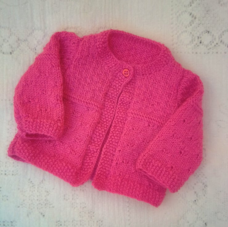 Baby's Knitted Single Button Cardigan, Round Neck Cardigan, Hand Knitted Cardigan, Pink Cardigan, Baby Clothes, Children’s Clothes, Baby’s Cardigan, New Baby Gift, Gift for Baby Shower, Birthday Gift