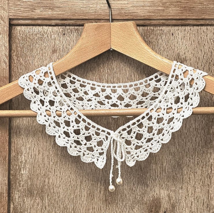 A handmade lace collar that adds timeless elegance to any outfit. Inspired by Cottagecore and Historic fashion, this detachable hand-crafted Peter Pan Collar is crafted with intricate cotton crochet lacework with heirloom quality detail. Perfect for styling with dresses, blouses, or knitwear, it elevates everyday looks with a touch of romantic vintage charm.