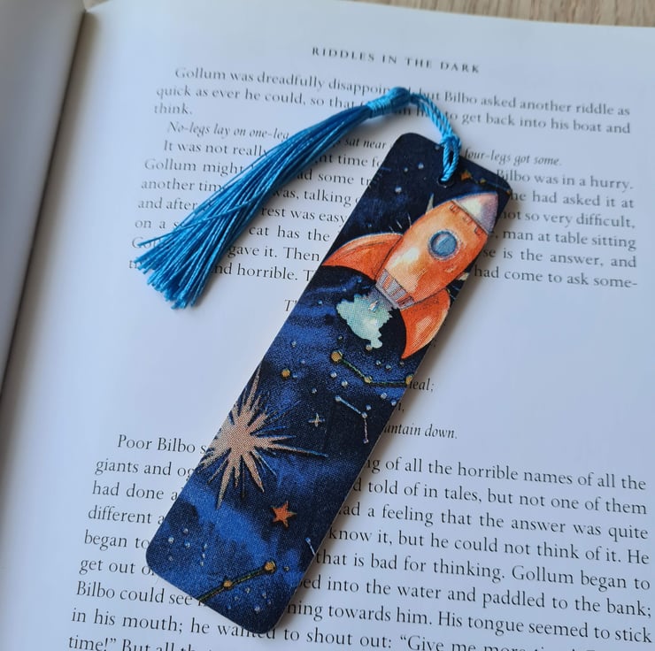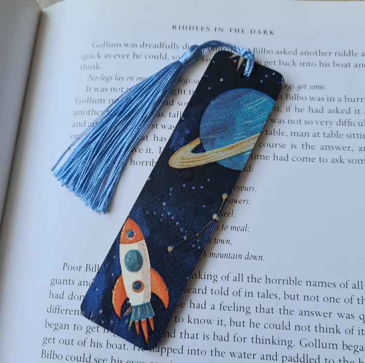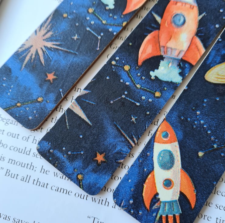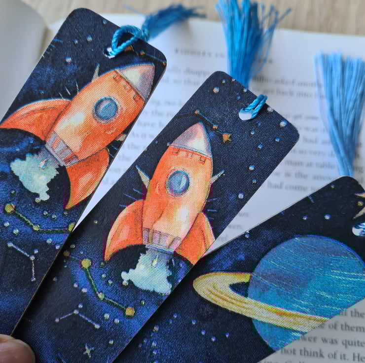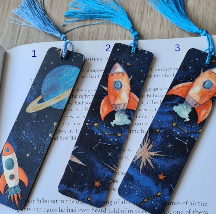 This cute wooden bookmark has been decoupaged using a lovely space theme design paper napkin, then varnished to protect it and finished with a matching tassel. This listing is for one bookmark. As there are different images on the one napkin, I have made three different bookmark designs, so you can choose which design you'd like. If you would like two different designs, you can order each separately.