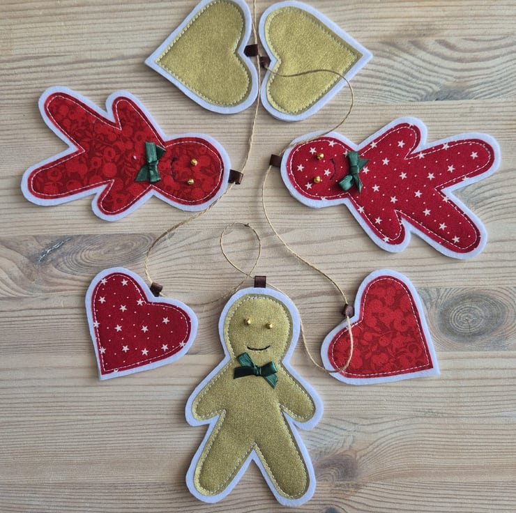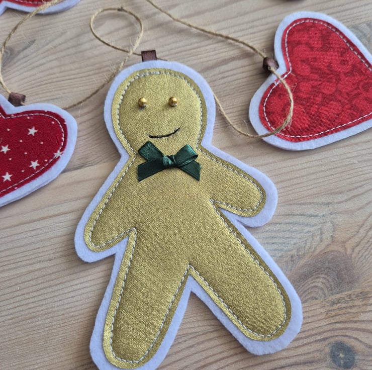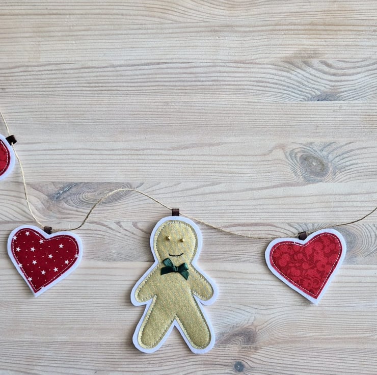 Liberty Tilda Fabric Gingerbread Man Hearts Christmas Bunting