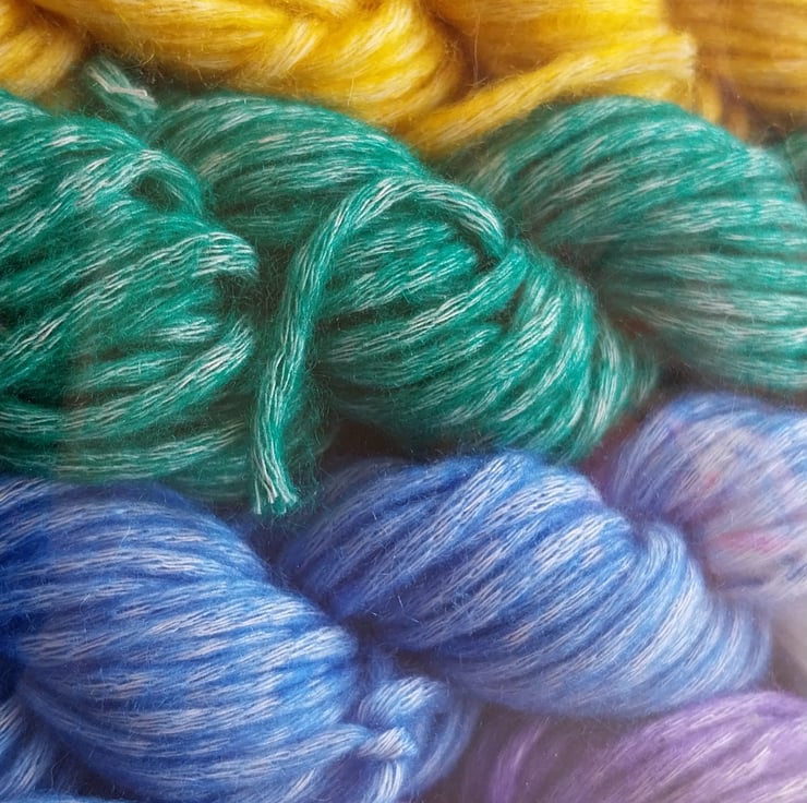 I am really enjoying knitting with this yarn. Not usual for me, with Acrylic blends! But this knits up soft, even and drapey. I am working on small accessory knit kits this season and this 70g pack will come out in a variety of colours.