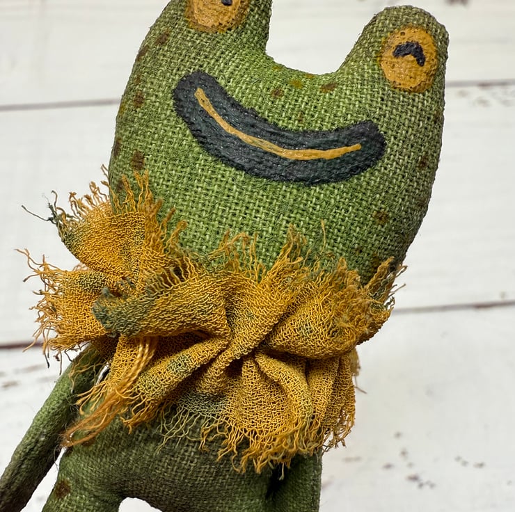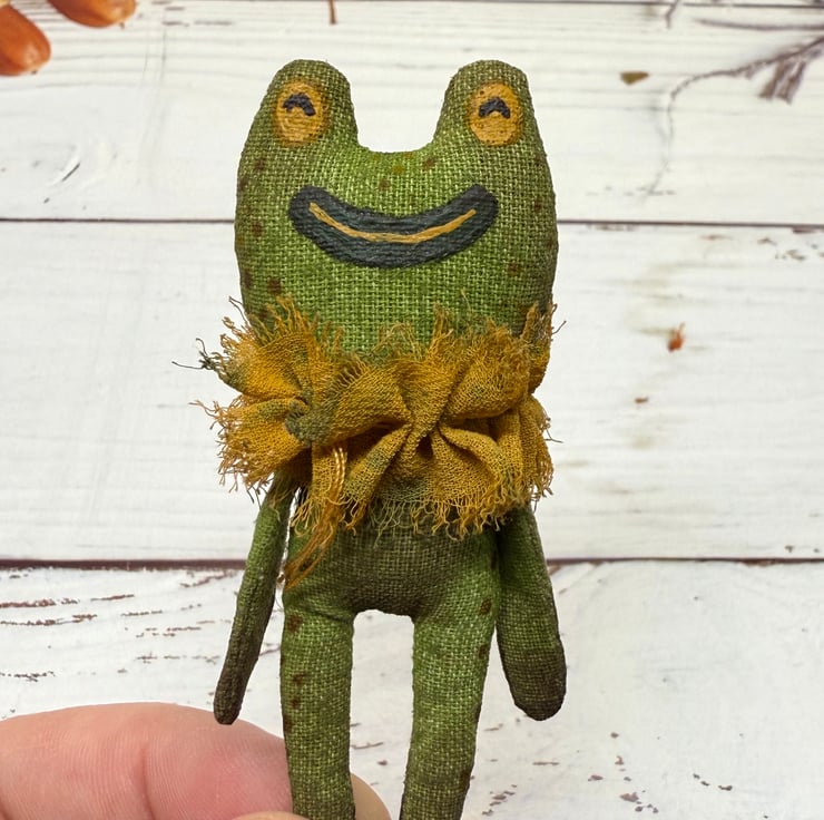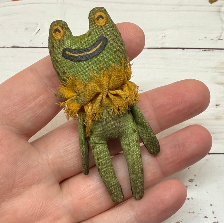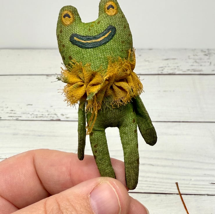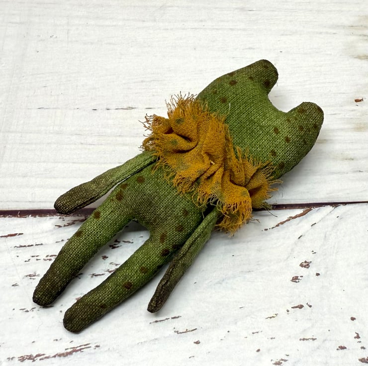 Hand Painted Miniature Frog Art Doll in Green