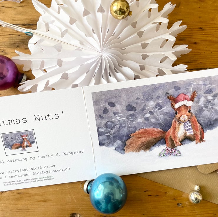 A pack of four 'Christmas Nuts' greeting cards - the newest addition to my growing selection of festive offerings.