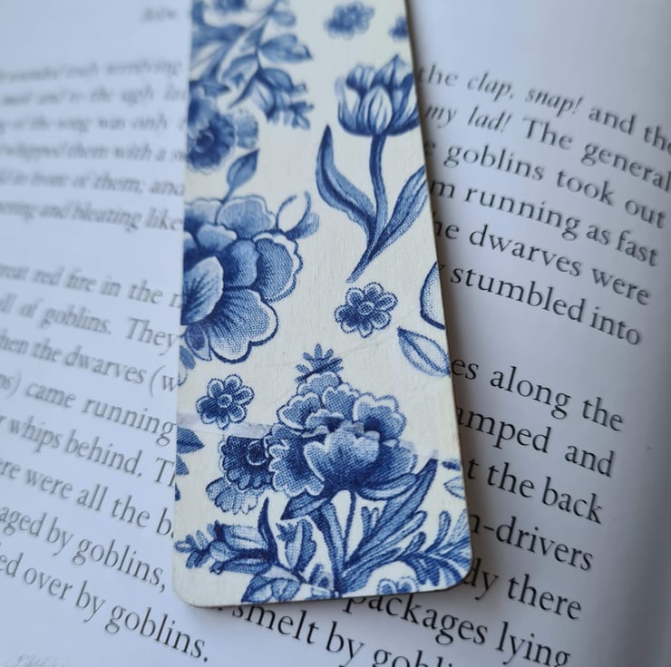The bookmark measures 12x3.2cm and the design is on one side, the other side is blank wood. As each bookmark is individually decorated, the one you receive may vary slightly from the one pictured, but will be the same design.