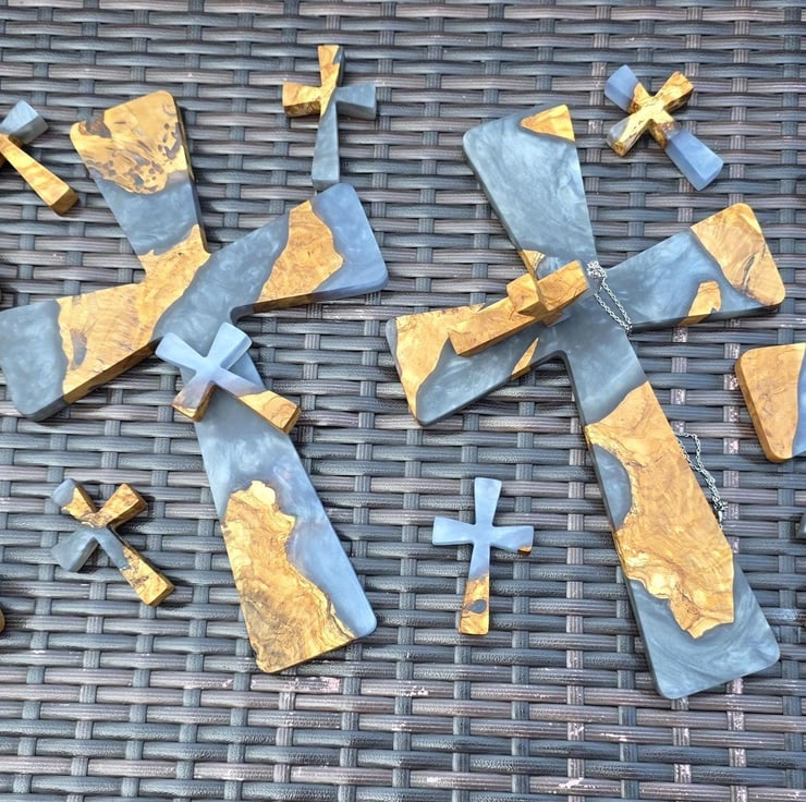 For me, the process is as important as the finished piece: carefully selecting the wood, pouring the resin in layers, and polishing it to a smooth finish. Each cross is a reminder of strength, renewal, and the beauty of handcrafted work.