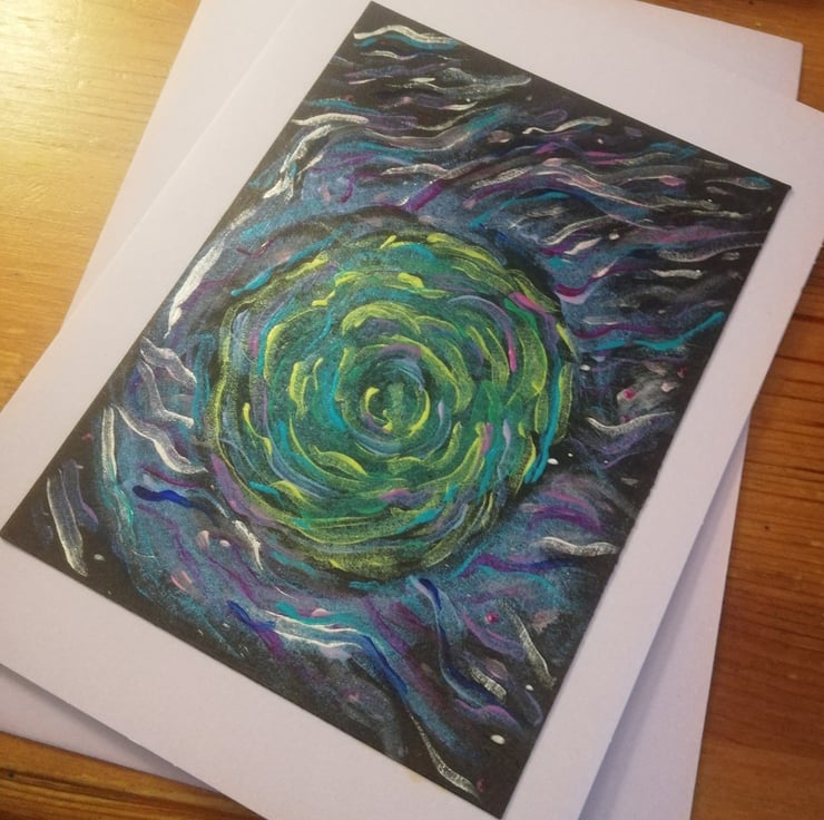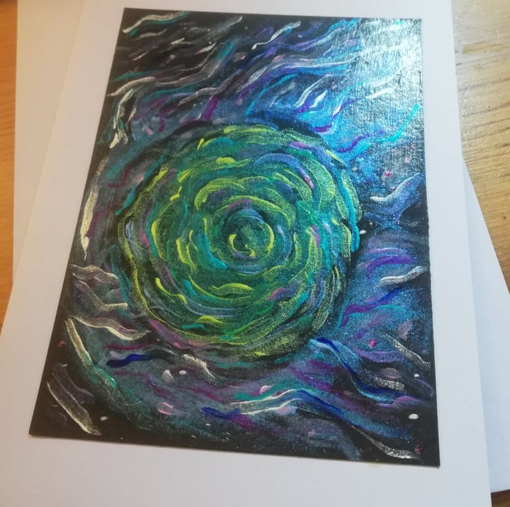 Hand painted original (sorry no prints), acrylic painting with some mixed media, on card with appropriate coloured envelopes. A6 size ish.