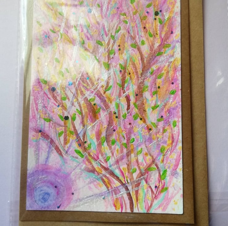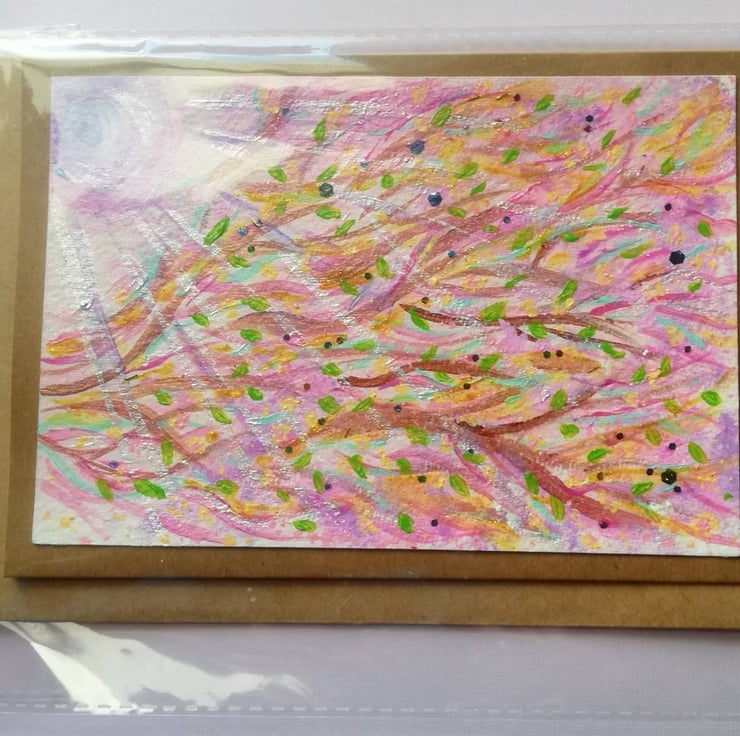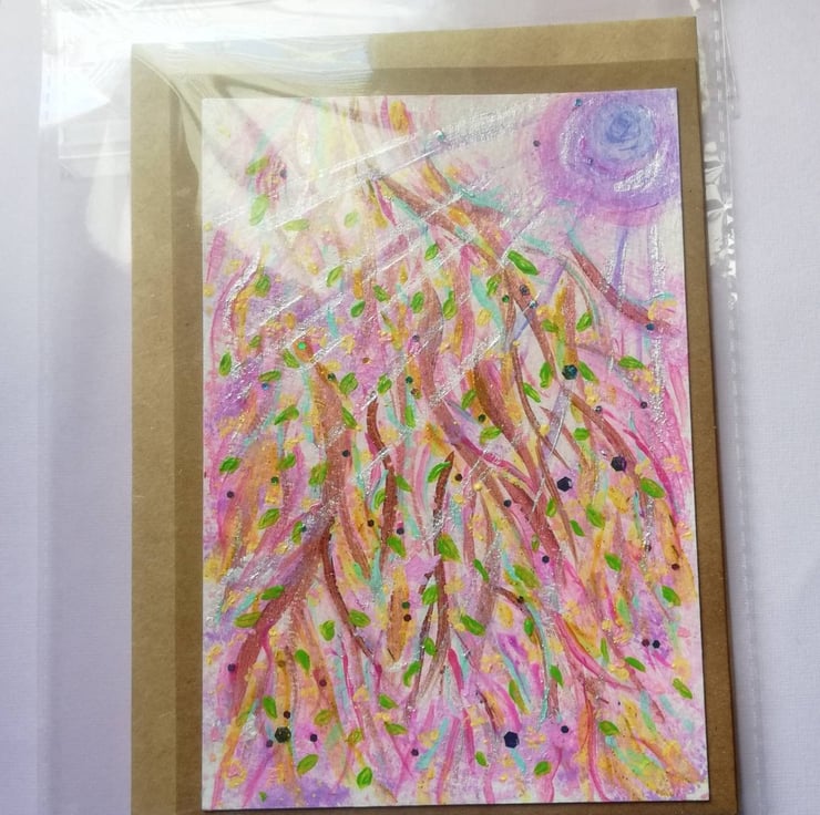 Hand painted original (sorry no prints), acrylic painting with some mixed media, on card with appropriate coloured envelopes. A6 size ish.