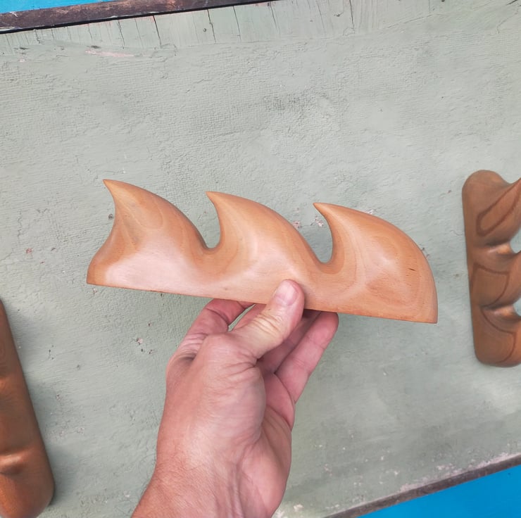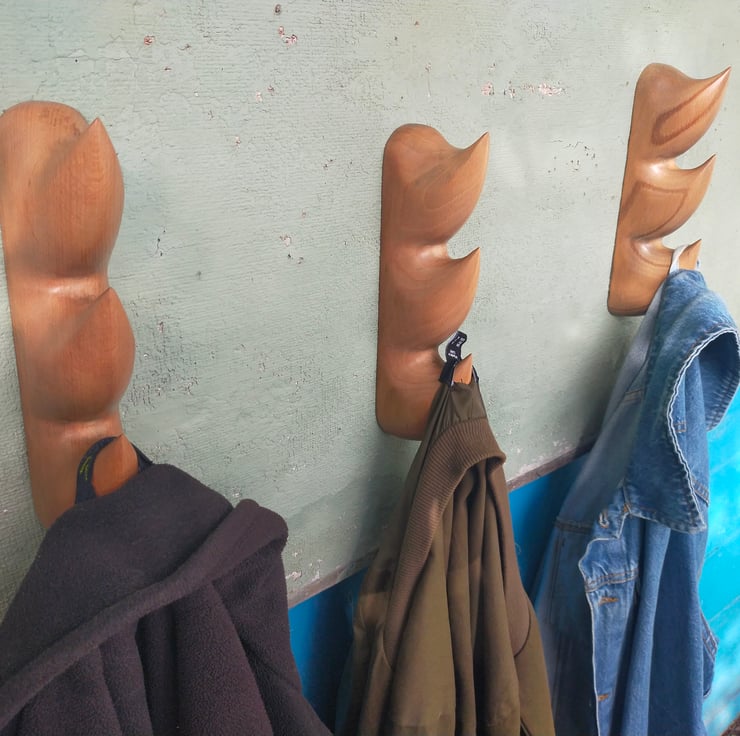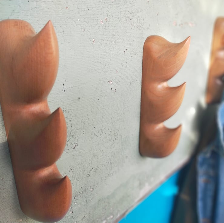 If you are looking for something sculptural and a little perplexing for your coats to hang on, consider these three wall claws, each individually hand carved from reclaimed beech.