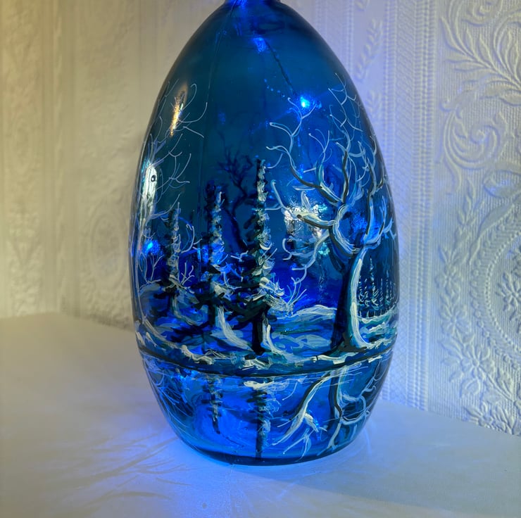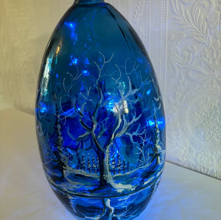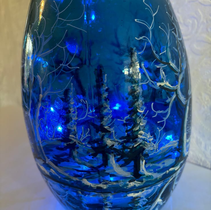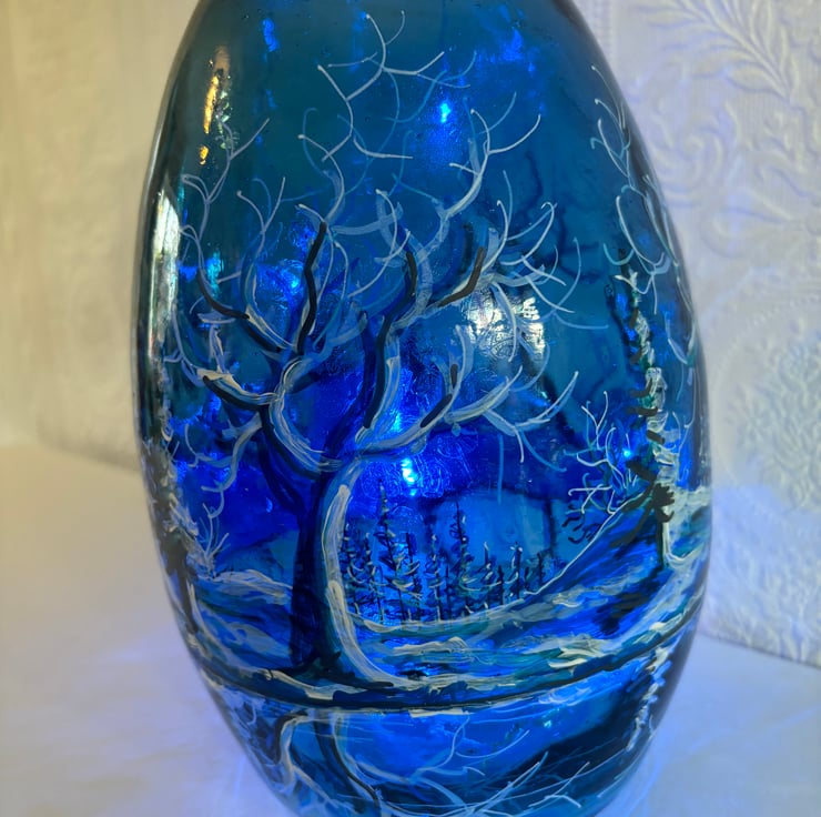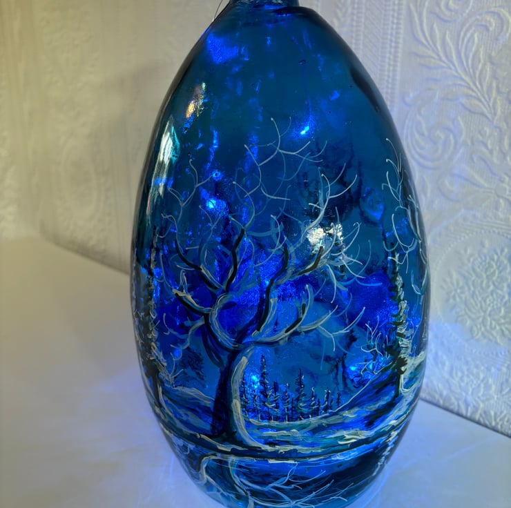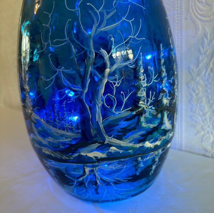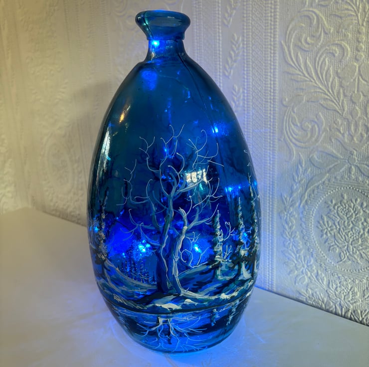 A hand painted and fired glass vase by Andrew Jenkins