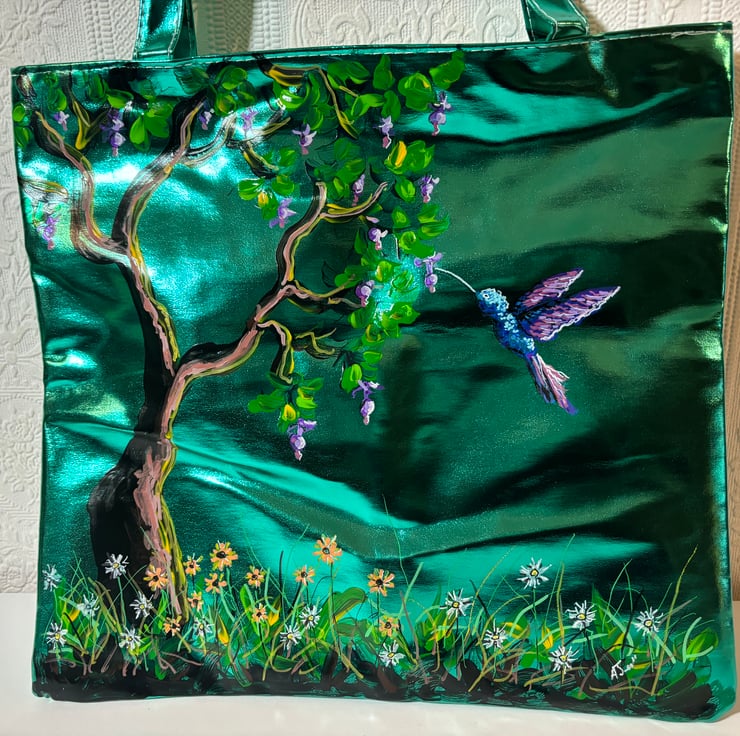 A hand painted and sealed fabric tote bag by Andrew Jenkins