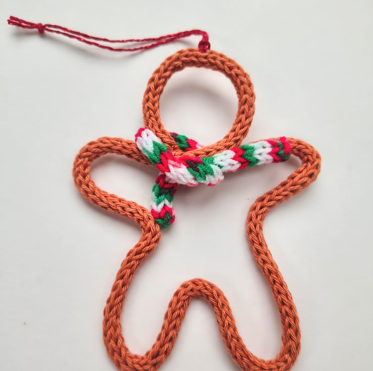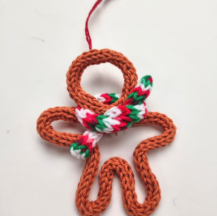 These little gingerbreads are knitted from cotton yarn and each has a jaunty scarf to keep them warm. Large ones measure 15cm tall by 10cm wide and the baby ones measure 10cm tall by 5 cm wide. As you can see they aren't all the same shape - they're individual and unique just like us! Each has a red sparkly twine loop so it's ready to hang on your tree right away.