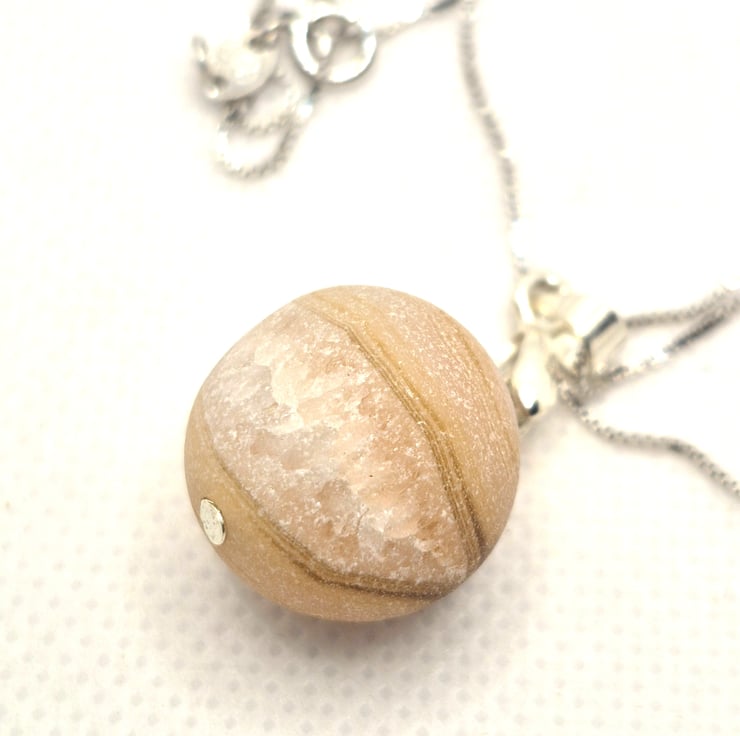 A druzy gemstone bead pendant which comes with an 18 inch sterling silver chain.