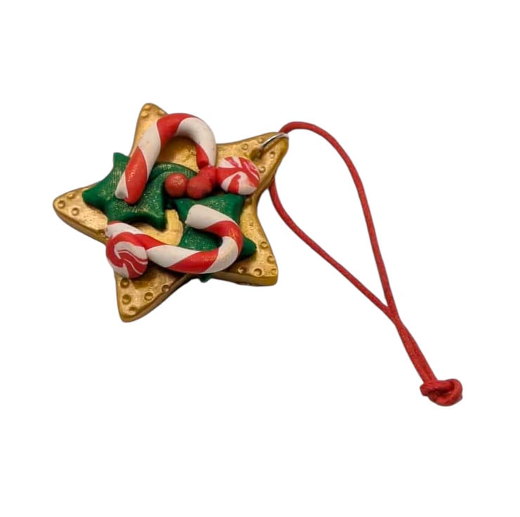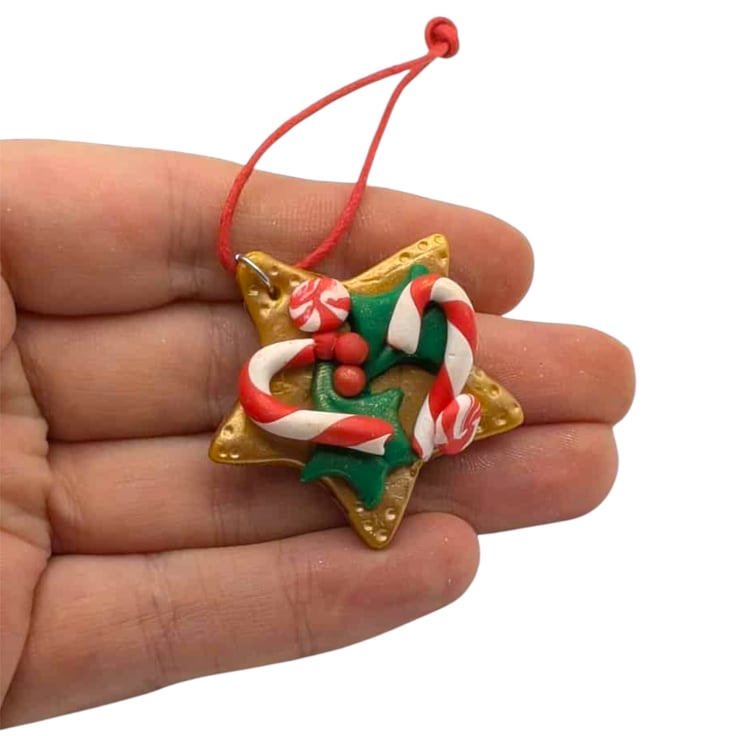 Add a festive sparkle to your holiday décor with this unique star-shaped Christmas ornament, handcrafted from durable polymer clay.