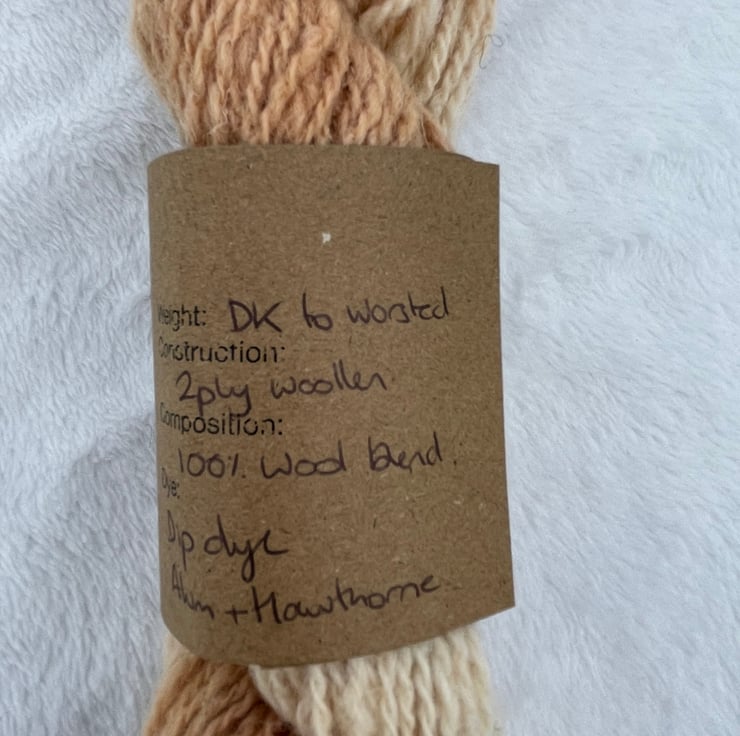 This wool has then been mordanted with Alum, and dip dyed with Hawthorne from my dye garden. This dye has good wash and light fastness. Please hand wash only.