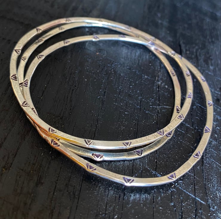 I love combining the vivid lines of the stamp with the more organic feel of the bangle shape, I was playing with this idea and then remembered that the word play in cornish is Gwari - perfect!