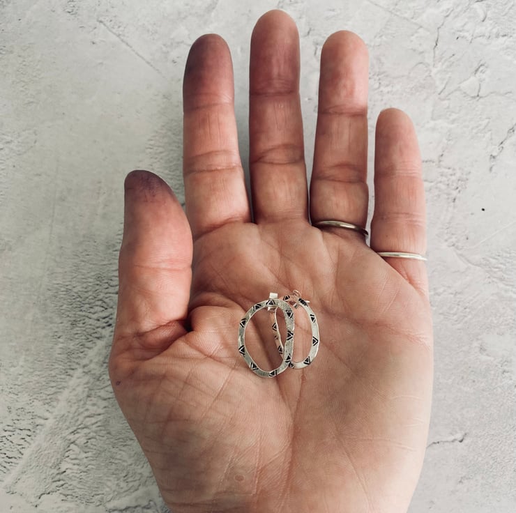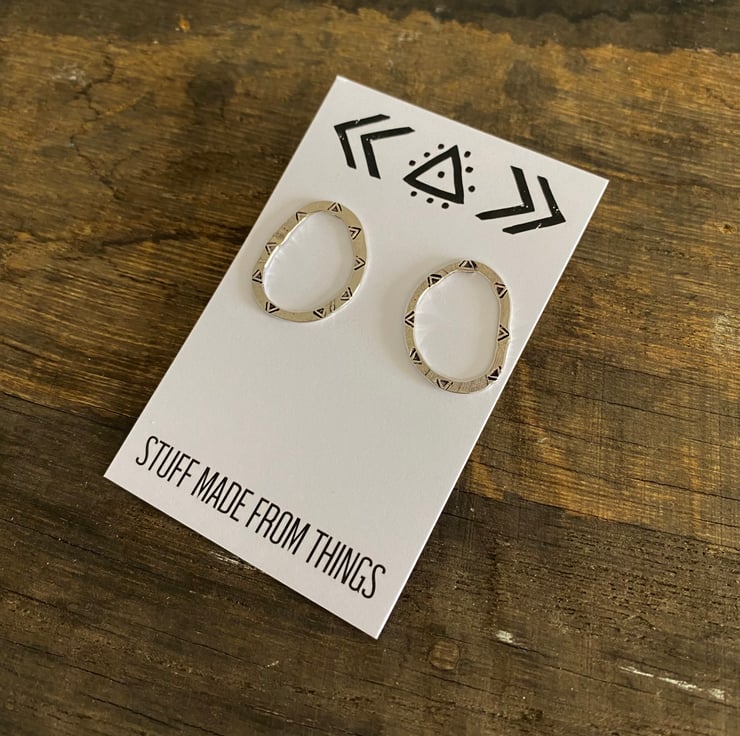 These gorgeous easy to wear earrings are 100% recycled sterling silver. They have joyful asymmetric shapes that create interest and catch the light as you move