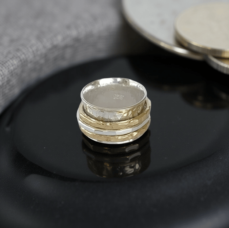Boho Luxury Spinner Ring in Sterling Silver & Gold - Filled