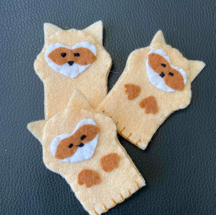 Gotta love a trash-can warrior! These adorable racoon finger puppets are handmade out of felt and embroidered. They are approximately 7cm tall and 4.5cm wide and securely stitched, making a lovely present.