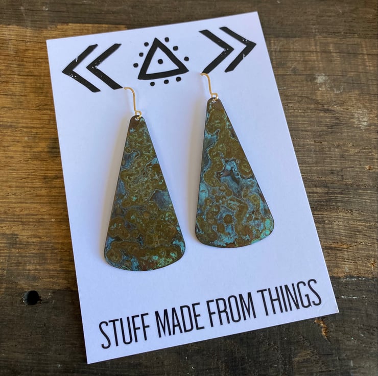 These earring are hung on gold plated ear wires. The earrings measure approximately 6 x 3cm