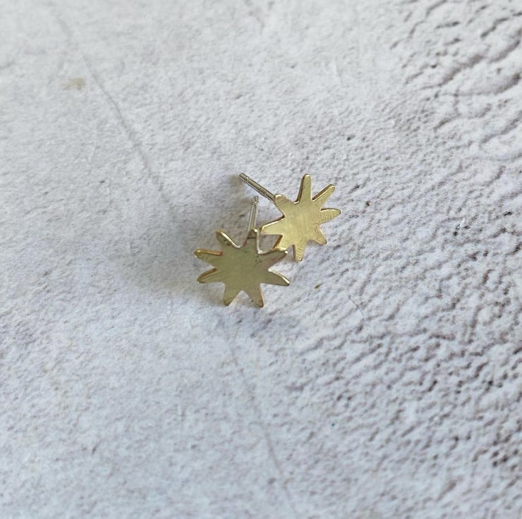 These beautiful little Sun Star Brass Stud Earrings have been hammered to give them a planished finished and polished to a high shine.