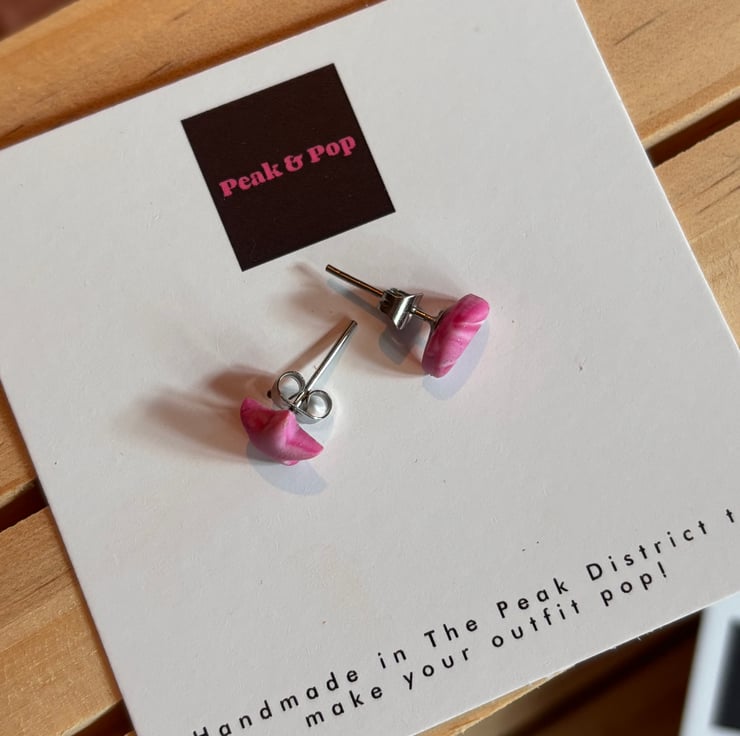 Add a playful celestial touch to your outfit with these handmade polymer clay studs. Featuring a mismatched pair — one star and one crescent moon — in shades of vibrant pink, they’re lightweight, fun, and designed to bring a little pop of joy to your everyday style. Perfect for dreamers, stargazers, or anyone who loves jewellery with a cosmic twist.