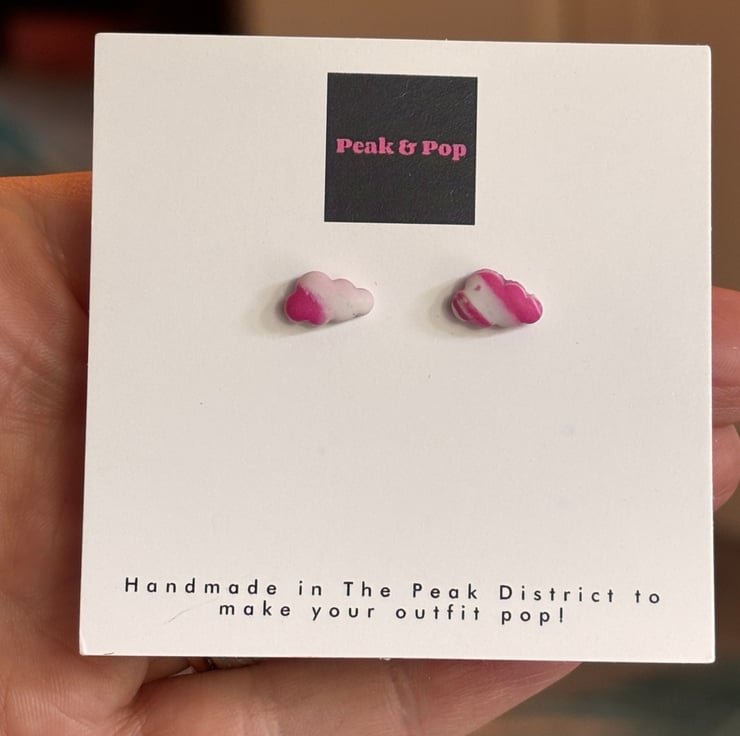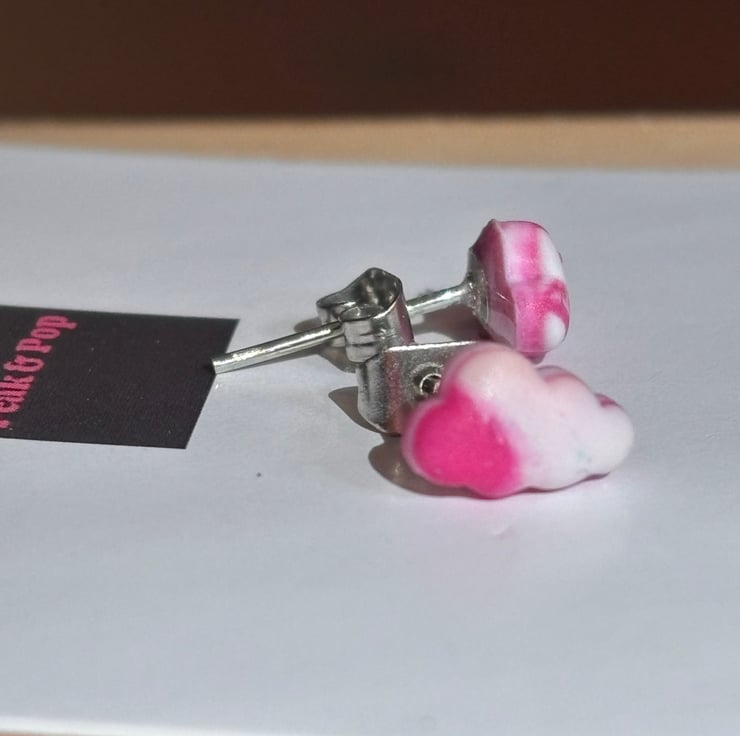 Drift away with these playful pink cloud stud earrings, handmade from polymer clay by mixing pink and white clay. Light as air and full of colour, they bring a touch of dreamy fun to your everyday style. Perfect for daydreamers, cloud-watchers, or anyone who loves jewellery with a whimsical twist.