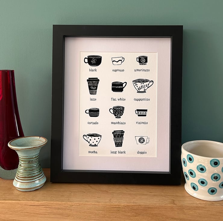 A fantastic gift for the coffee lover in your life,this digital print has a variety of different coffee types to please everyone. Would be a great addition to your kitchen decor.