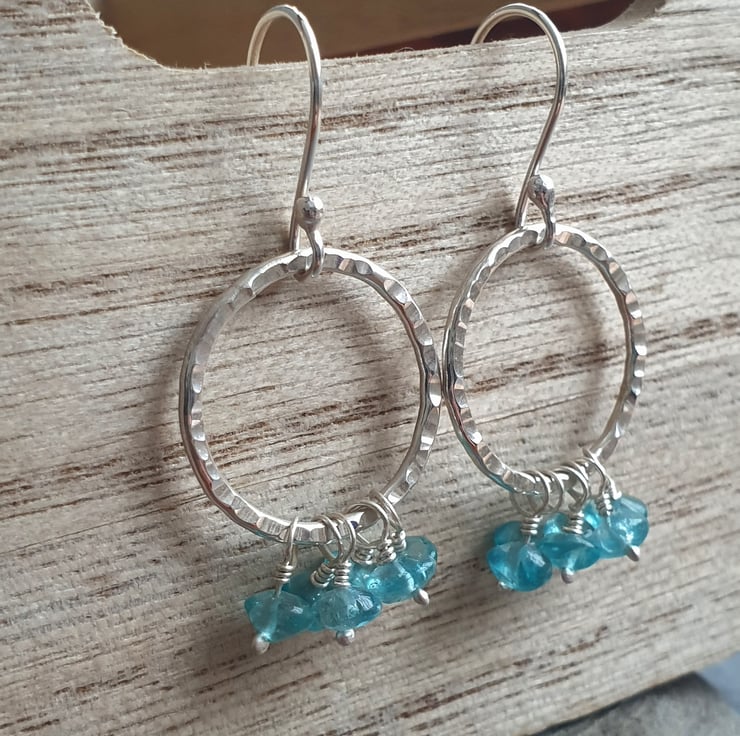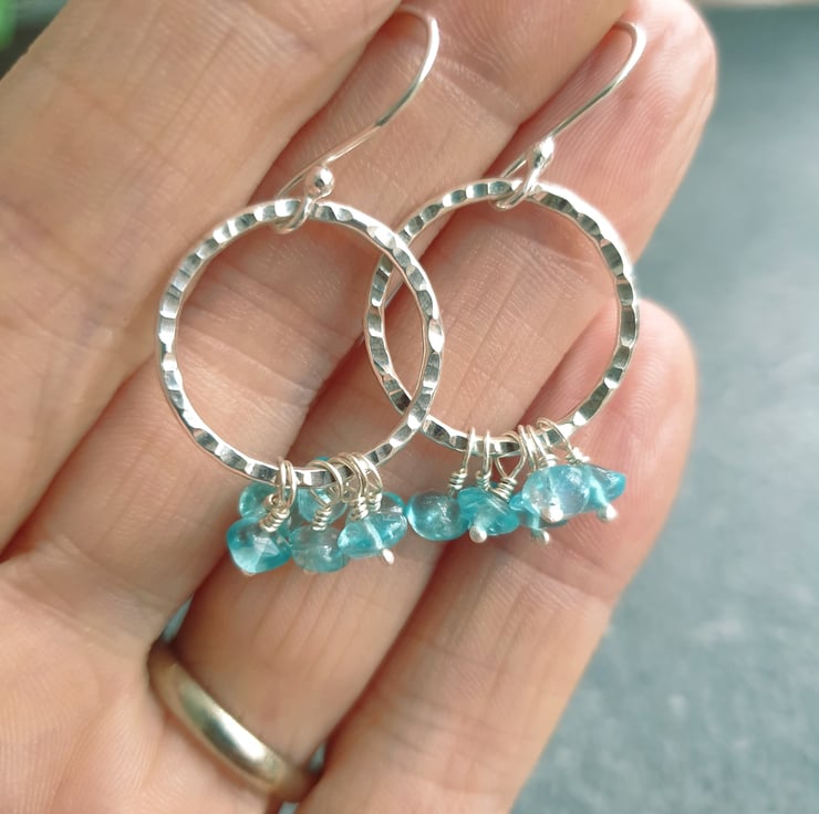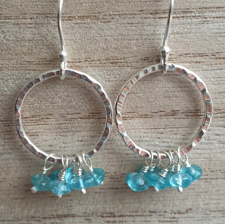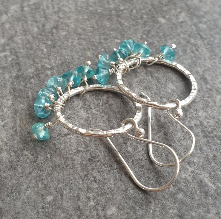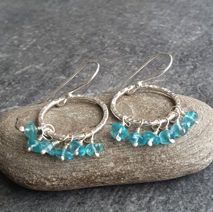 Sterling silver and apatite hoop earrings, Bright blue gemstones