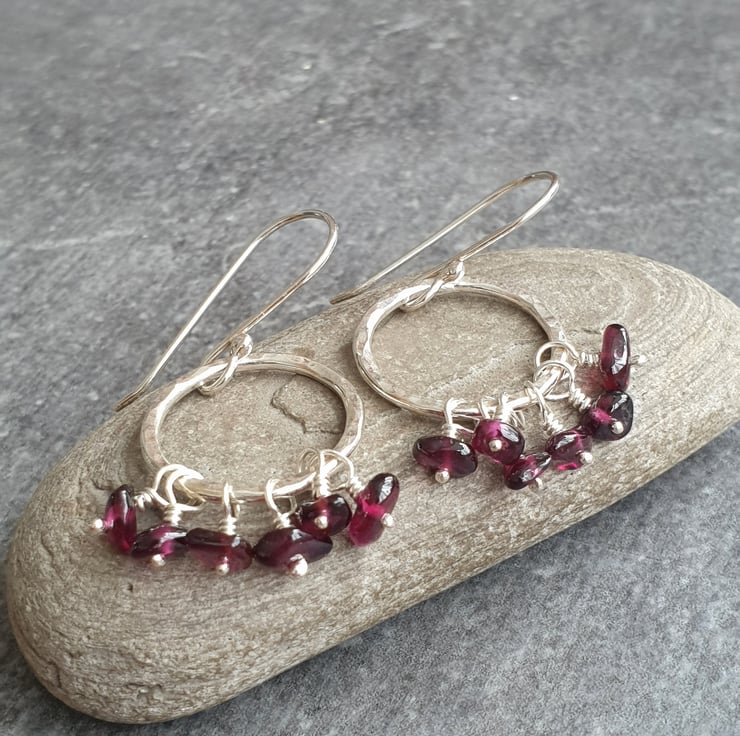 These pretty earrings are made from hammered sterling silver hoops to which I've added tiny bright blue gemstones. The gems have a lovely dangling movement when worn and give a lovely pop of colour against the silver. The ear wires are also sterling silver.