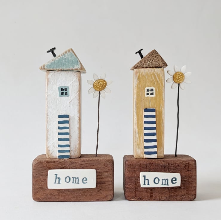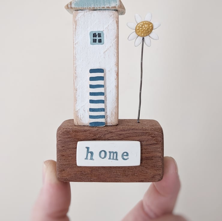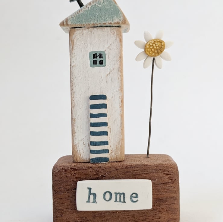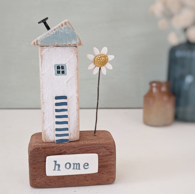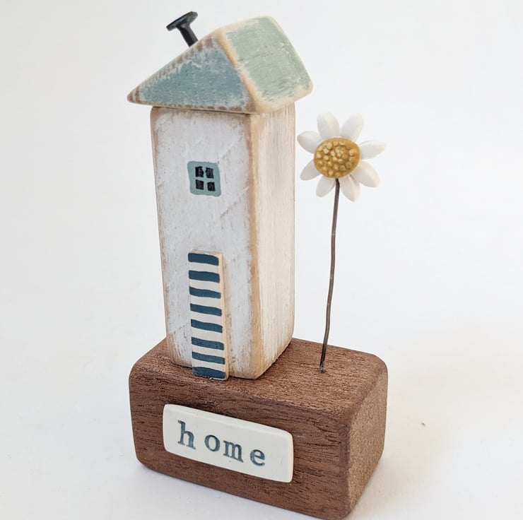 Little Wooden Hut with Clay Daisy Flower 'Home'