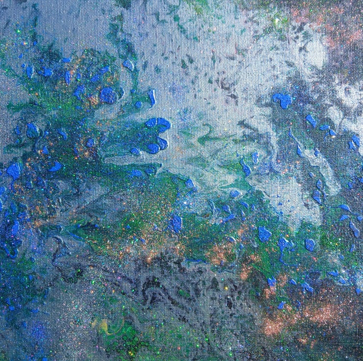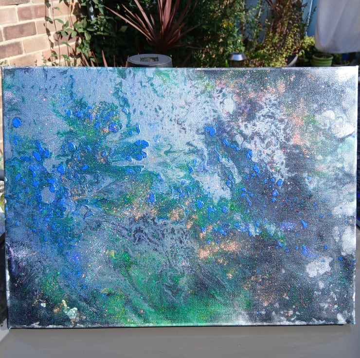 I love the flow & mystery in paint pouring you never quite know exactly what your going to get. I think that's the beauty of this particular painting. Although the main inspiration for this canvas was the night sky. As you can see it's captured very well & would look dazzling in any home.