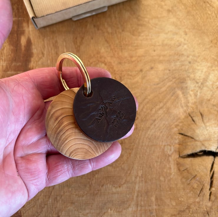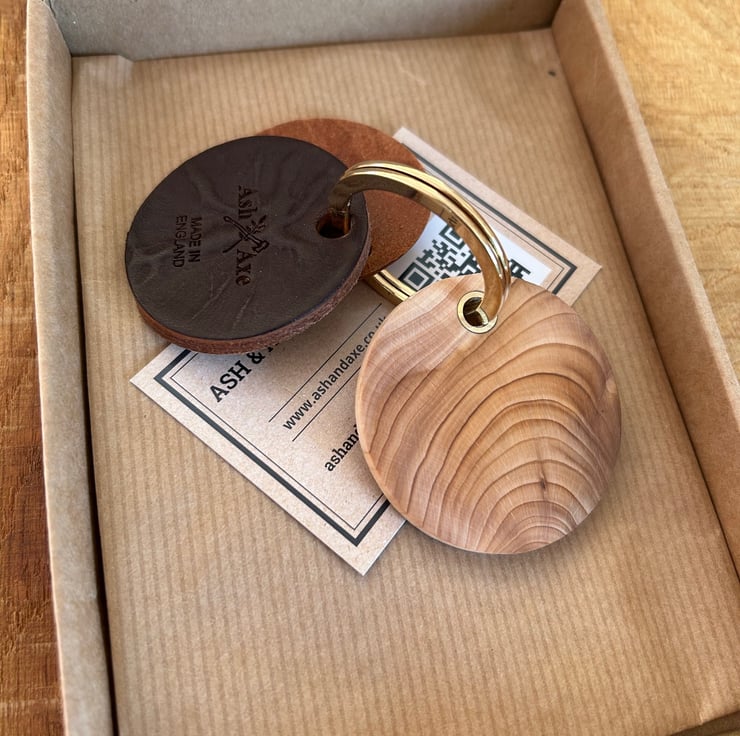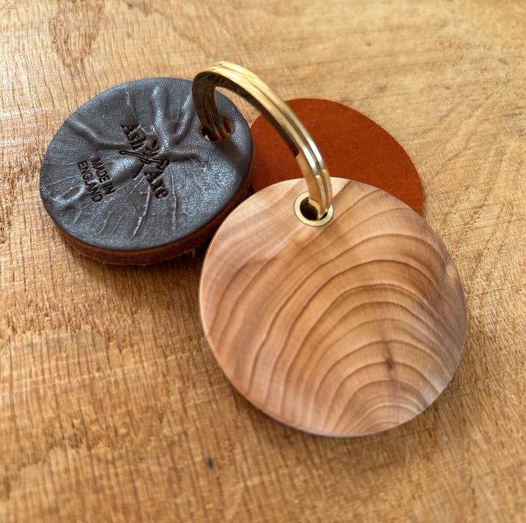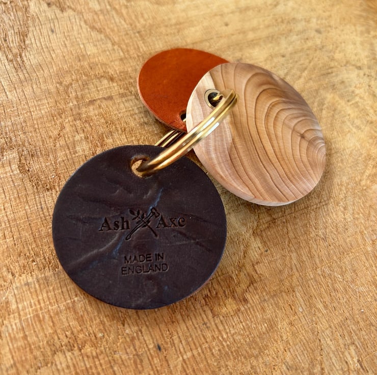 Available is a stunning English yew and leather keyring