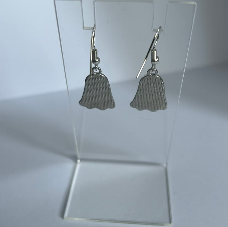 Cute silver back ghost earrings with stainless steel hooks.earrings come with clear rubber backs.