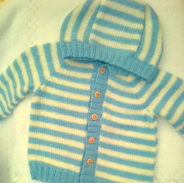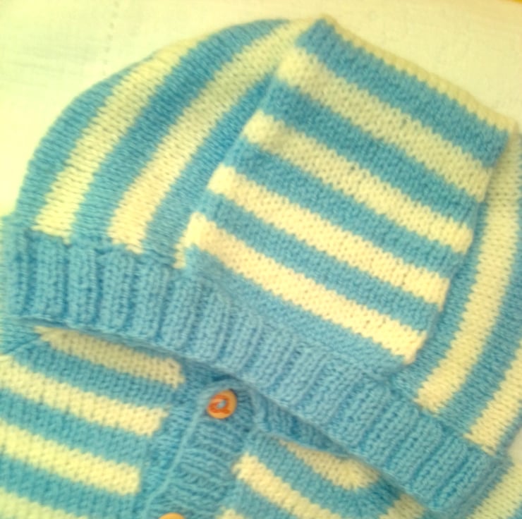 Striped Jacket with Hood For Babies and Small Children, Baby Gift Ideas, Baby's Jacket, Knitted Baby Jacket, Knitted Baby Coat, New Baby Gift, Baby Shower Gift,Striped Jacket