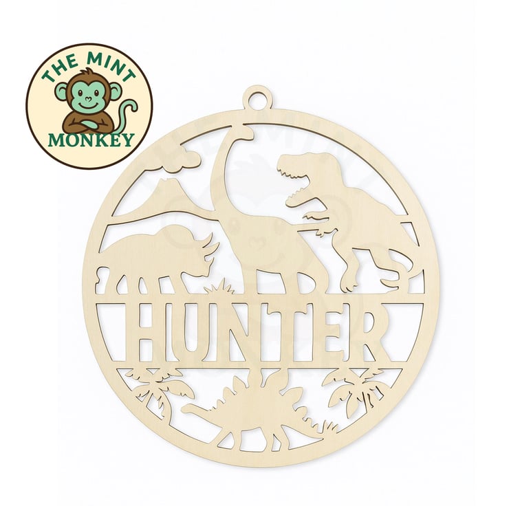 This Dinosaur Personalised Sign Wall art is available in many colours. This charming piece of home d cor that is customised with the name of your choice. Handmade in the United Kingdom, this modern-style plaque features a round shape and is designed to be hung on doors or walls. The wood adds a rustic touch, making it suitable for any room in the home, especially bedrooms, cloakrooms, or entryways. With a roarsome Dinosaur theme and novel pattern, this plaque is perfect for adding a touch of magic to your living space.