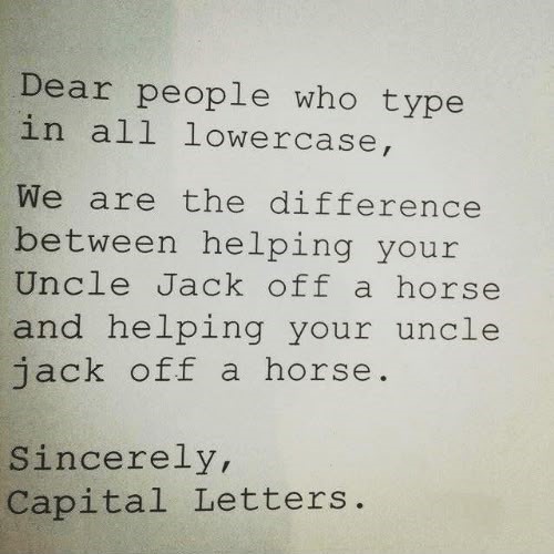 And iths, children, is why punctuation and capital letters are important. A must for those of us who can't bring ourselves to send a text message in lower case...
