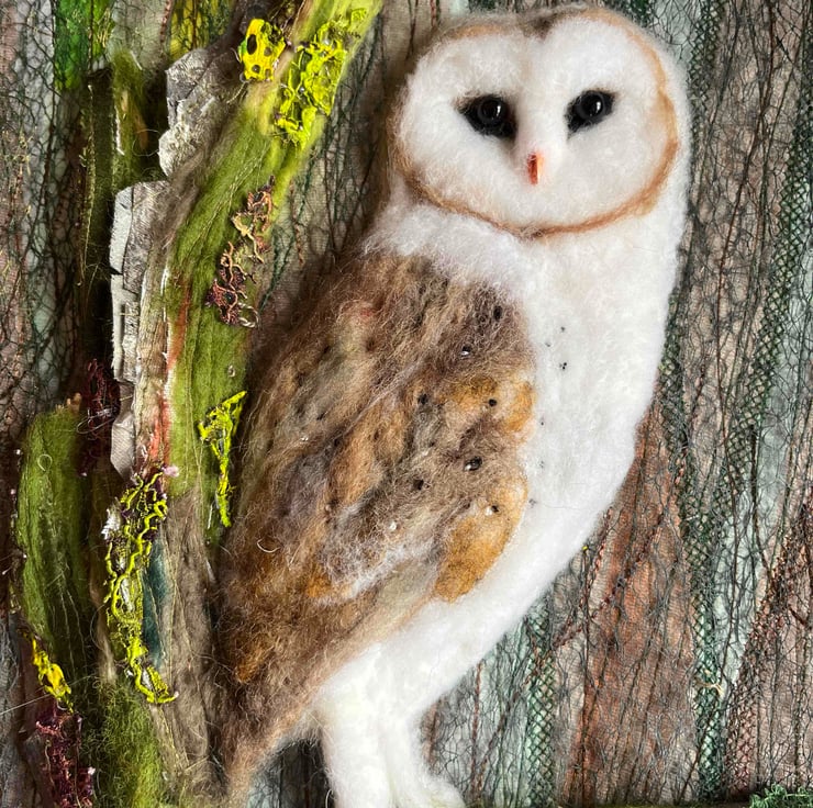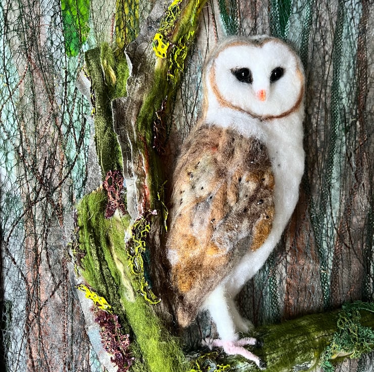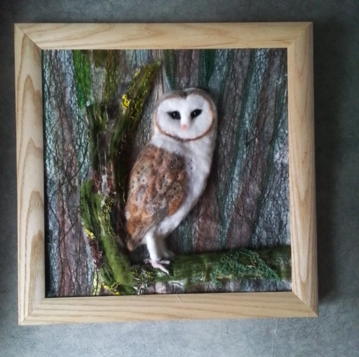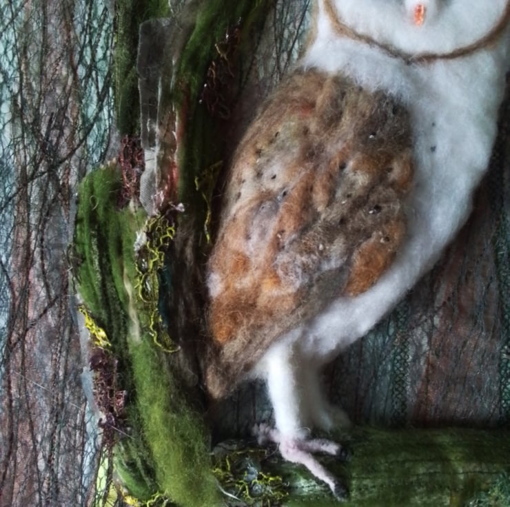 Created to give a 3D effect of the owl standing in a lichen and moss covered branch.